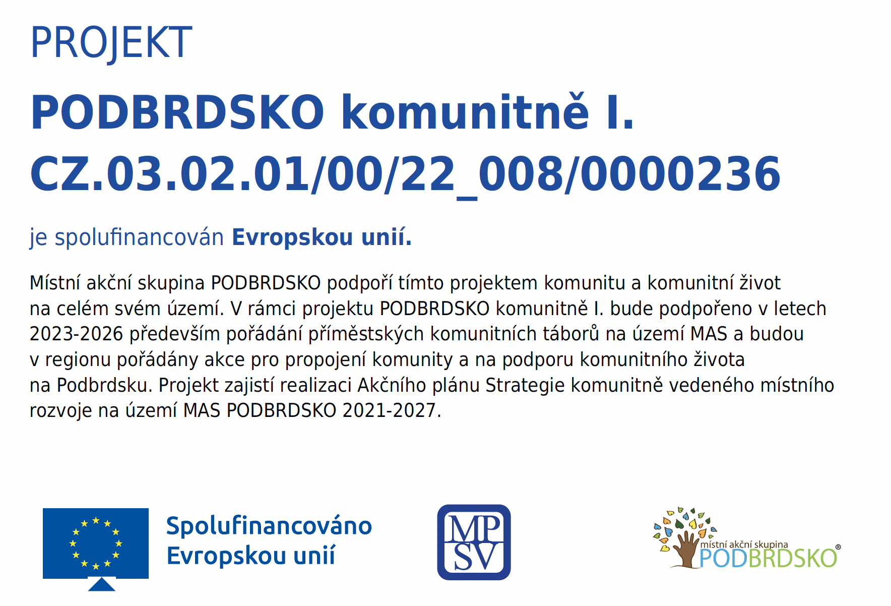 Číslo účtu: 182-3300000399/0800 (MAS Podbrdsko)